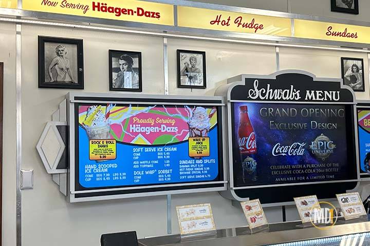 O local serve sorvetes Haagen-Dazs em casquinhas, sundaes, splits, milkshakes e muito mais. Anteriormente, o local contava com sobreposições simples celebrando lançamentos de filmes como “Trolls” e “Gato de Botas”. O milkshake é por tempo limitado e você tem duas opções de sabores: chocolate e morango com pimenta.